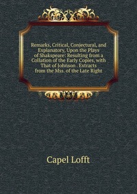 | Полное название книги | Capel Lofft Remarks, Critical, Conjectural, and Explanatory, Upon the Plays of Shakspeare: Resulting from a Collation of the Early Copies, with That of Johnson . Extracts from the Mss. of the Late Right |