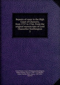 | Полное название книги | Great Britain. Court of Chancery Reports of cases in the High Court of Chancery, from 1757 to 1766. From the original manuscripts of Lord Chancellor Northington |