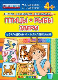 | Полное название книги | М. Г. Циновская Рисуем. Наблюдаем. Сравниваем. Птицы. Рыбы. Звери. С загадками и наклейками. 4+ |