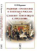 | Полное название книги | Евгений Карнович Родовые прозвания и титулы в России и слияние иноземцев с русскими |