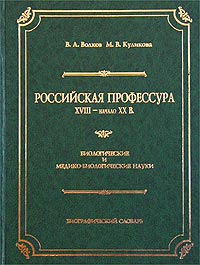 | Полное название книги | М. В. Куликова, В. А. Волков Российская профессура. XVIII - начало XX в. Биологические и медико-биологические науки. Биографический словарь |