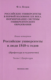 | Полное название книги | Ф. А. Петров Российские университеты в первой половине XIX века. Формирование системы университетского образования. Книга 4. Российские университеты и люди 1840-х годов |