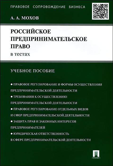 | Полное название книги | А. А. Мохов Российское предпринимательское право в тестах. Учебное пособие |