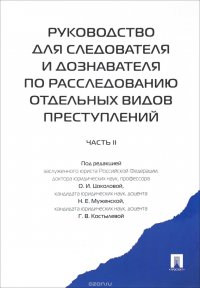 | Полное название книги | О. И. Цоколовой, Г. В. Костылевой, Н. Е. Муженской Руководство для следователя и дознавателя по расследованию отдельных видов преступлений. В 2 частях. Часть 2 |