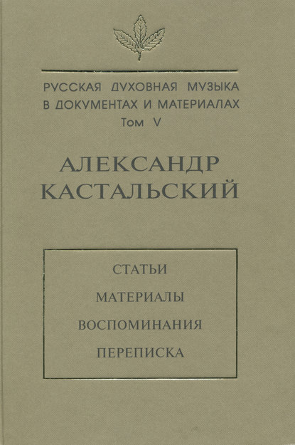 | Полное название книги | С. Г. Зверева Русская духовная музыка в документах и материалах. Том V. Александр Кастальский. Статьи, материалы, воспоминания, переписка |