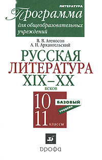 | Полное название книги | В. В. Агеносов, А. Н. Архангельский Русская литература XIX-XX веков. 10-11 класс. Программа для общеобразовательных учреждений. Базовый уровень |