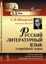 | Полное название книги | С. П. Обнорский Русский литературный язык старейшей поры: Лингвистический анализ памятников древнерусской словесности |