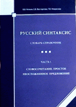 | Полное название книги | Е. В. Восторгова, В. В. Репкин, Т. В. Некрасова Русский синтаксис. Словарь-справочник. Часть 1. Словосочетание. Простое неосложненное предложение |