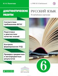 | Полное название книги | И. Н. Политова Русский язык. 6 класс. Диагностические работы. Углубленное изучение. К УМК В. В. Бабайцевой |