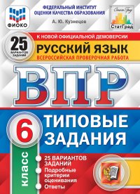 | Полное название книги | А. Ю. Кузнецов Русский язык. 6 класс. Всероссийская проверочная работа. Типовые задания. 25 вариантов |