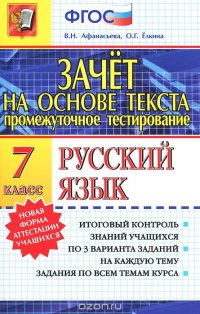 | Полное название книги | В. Н. Афанасьева, О. Г. Елкина Русский язык. 7 класс. Зачет на основе текста |
