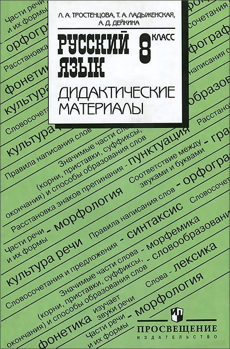 | Полное название книги | Л. А. Тростенцова, Т. А. Ладыженская, А. Д. Дейкина Русский язык. 8 класс. Дидактические материалы |