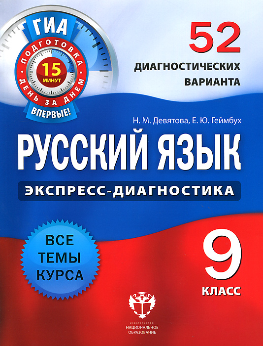 | Полное название книги | Н. М. Девятова, Е. Ю. Геймбух Русский язык. 9 класс. 52 диагностических варианта |