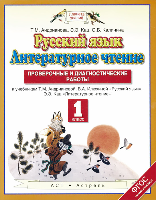 | Полное название книги | Т. М. Андрианова, Э. Э. Кац, О. Б. Калинина Русский язык. Литературное чтение. 1 класс. Проверочные и диагностические работы к учебникам Т. М. Андриановой, В. А. Илюхиной "Русский язык", Э. Э. Кац "Литературное чтение&qu |