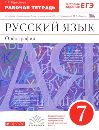 | Полное название книги | Л. Г. Ларионова Русский язык. Орфография. 7 класс. Рабочая тетрадь к учебнику под ред. М. М. Разумовской, П. А. Леканта |