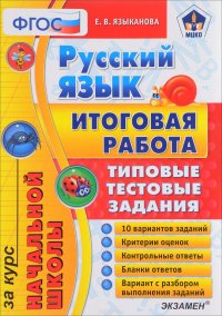 | Полное название книги | Е. В. Языканова Русский язык. Типовые тестовые задания. Итоговая работа за курс начальной школы |
