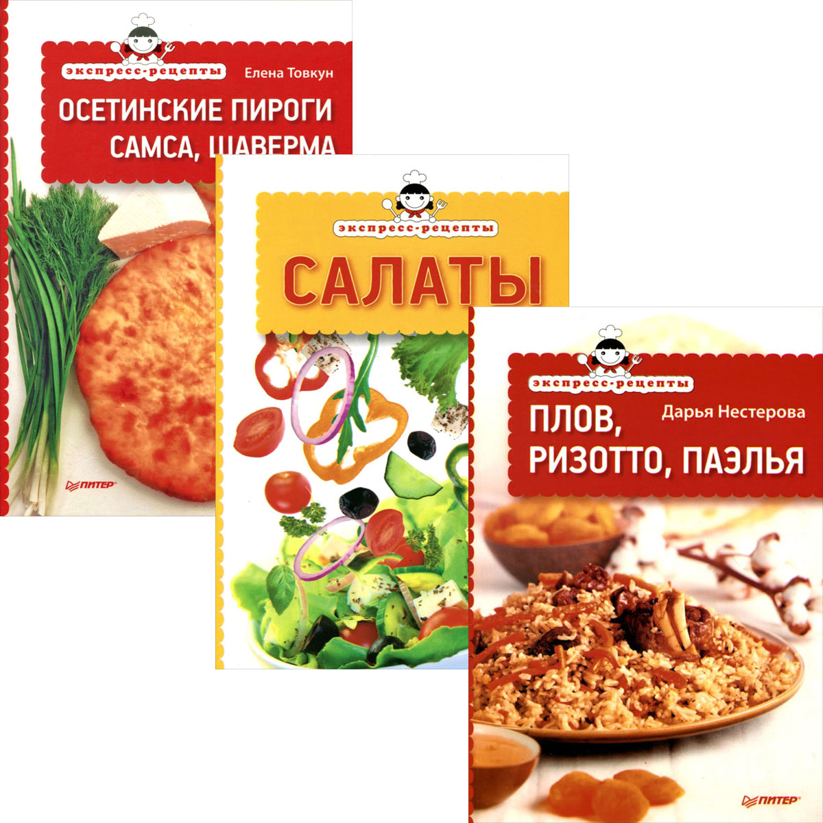 | Полное название книги | Дарья Нестерова, Елена Товкун Салаты. Осетинские пироги, самса, шаверма. Плов, ризотто, паэлья (комплект из 3 книг) |