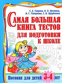 | Полное название книги | С. В. Щербинина, С. Е. Гаврина, И. Г. Топоркова, Н. Л. Кутявина Самая большая книга тестов для подготовки к школе. Пособие для детей 3-4 лет |