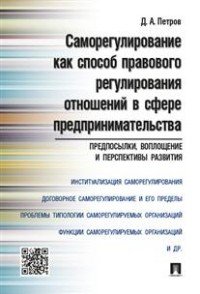 | Полное название книги | Д. А. Петров Саморегулирование как способ правового регулирования отношений в сфере предпринимательства. Предпосылки, воплощение и перспективы развития |