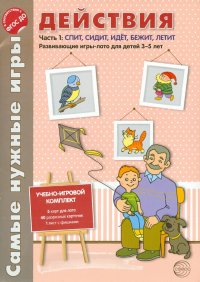 Комплект развивающих игр для дошкольников в двух частях "Действия" поможет: - расширить предметный и глагольный словарь; - сформировать умение подбирать к глаголам подходящие по смыслу существительные; - научить различать глаголы по смыслу и существительные по способу действия; - развить фразовую речь, мышление, внимание. Материал идеально подходит для обучения в игровой форме:- красочные рисунки привлекут внимание ребенка; - простая ассоциация "картинка" - "действие" поможет легко научиться соотносить объект и его действие; - из игр разной сложности Вы сможете подобрать подходящую для Вашего ребенка и создать новые игры на основе предложенных. Комплект содержит: - описание разных вариантов игр; - восемь листов А4 на картоне (с картами лото, разрезными карточками и фишками). Это и многое другое вы найдете в книге Самые нужные игры. Действия. Часть. Спит, сидит, идет, летит. ФГОС ДО (Е. В. Васильева)
