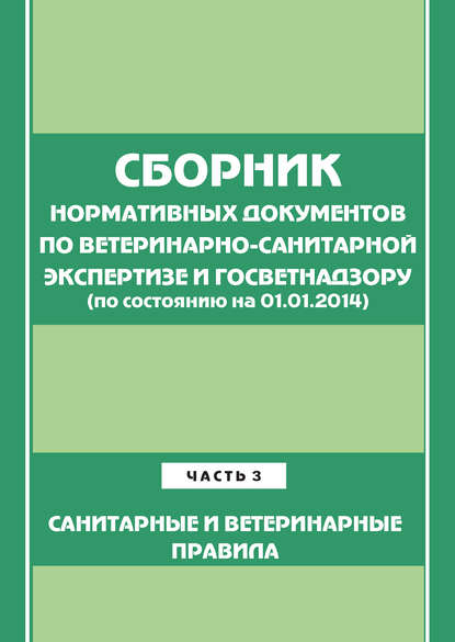 Подробная информация о книге «Сборник нормативных документов по ветеринарно-санитарной экспертизе и госветнадзору. Часть 3. Ветеринарные и санитарные правила (по сост. на 01.06.2014) Василий Петрович Толоконников». Сайт не предоставляет возможности читать онлайн или скачать бесплатно книгу «Сборник нормативных документов по ветеринарно-санитарной экспертизе и госветнадзору. Часть 3. Ветеринарные и санитарные правила (по сост. на 01.06.2014) Василий Петрович Толоконников».