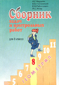 | Полное название книги | А. Г. Мерзляк, М. С. Якир, В. Б. Полонский, Е. М. Рабинович Сборник задач и контрольных работ по геометрии для 8 класса |