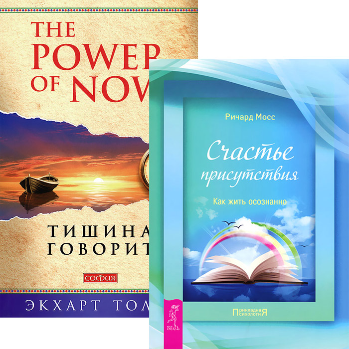 В комплект входят книги Р.Мосса "Счастье присутствия. Как жить осознанно" (из серии "Прикладная психология", формат книги: 76x108/32) и Э.Толле "Тишина говорит" (формат книги: 84x108/32). Это и многое другое вы найдете в книге Счастье присутствия. Как жить осознанно. Тишина говорит (комплект из 2 книг) (Ричард Мосс, Экхарт Толле)