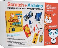 Использование графических средств разработки на основе Scratch для программирования популярной платы Arduino дает возможность разрабатывать электронные устройства не только взрослым радиолюбителям, но также детям и людям с гуманитарным образованием. С помощью данного набора вы получите основные навыки работы в Scratch, создадите различные проекты и игры с подключаемыми электронными компонентами и платой Arduino UNO, а также автономный проект "Умный домик".Вы научитесь:- разрабатывать компьютерные игры на Scratch;- собирать электрические схемы на беспаечной макетной плате;- специализированной плате ProtoShield;- управлять контроллером Arduino;- подключать различные датчики;- создавать автономные проекты.В состав набора входит:- МИКРОКОНТРОЛЛЕР:x1 Arduino Uno R3;x1 Кабель USB;x1 Корпус для Arduino UNO;- МАКЕТНЫЕ ПЛАТЫ, ПРОВОДА:x1 Шилд прототипирования;x1 Плата макетная беспаечная [400 контактов], 8,5х5,5 см;x20 Провода "папа-папа";x20 Провода "папа-мама";x2 Зажим "крокодил" малый 2,8 см;x1 Провод с клеммами;- РЕЗИСТОРЫ, ПОТЕНЦИОМЕТРЫ:x10 Резистор 220 Ом;x10 Резистор 1 кОм;x10 Резистор 3,3 кОм;x10 Резистор 10 кОм;x10 Резистор 22 кОм;x1 Ползунковый потенциометр пропорциональный;- КНОПКИ, РЕЛЕ:x1 Модуль кнопочной сборки;x1 Модуль кнопки SVG;x5 Тактовые кнопки;x1 Модуль реле 1x;- СВЕТОДИОДЫ;x1 Cветодиодная сборка;x8 Светодиоды 5 мм;x1 Лампа накаливания 2,5 В;- ДАТЧИКИ:x1 Модуль датчика света SVG;x1 ИК датчик движения HC-SR501;x1 Датчик звука;x1 УЗ приемопередатчик HC-SR04;- ПИТАНИЕ:x1 Патрон с проводами для лампы накаливания;x1 Батарейный отсек для 2-х элементов АА;x2 Батарейки AA.Рекомендовано детям от 12 лет. Это и многое другое вы найдете в книге Scratch и Arduino для юных программистов и конструкторов (+ набор электронных компонентов) (Ю. А. Винницкий, А. Т. Григорьев)