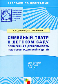 | Полное название книги | Н. В. Додокина, Е. С. Евдокимова Семейный театр в детском саду. Совместная деятельность педагогов, родителей и детей. Для работы с детьми 3-7 лет |