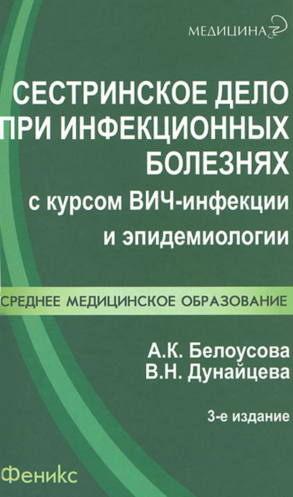 | Полное название книги | А. К. Белоусова, В. Н. Дунайцева Сестринское дело при инфекционных болезнях с курсом ВИЧ-инфекции и эпидемиологии |