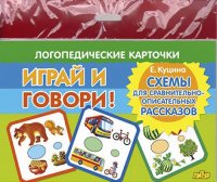 Данный набор карточек предполагает составление сравнительно-описательных рассказов по схеме. Дети часто затрудняются сравнивать два предмета, им нужна некая опора. Предлагаемые схемы служат планом для составления связного сравнительно-описательного рассказа. Дети учатся использовать сложносочиненные предложения с союзом "а", тренируются в употреблении прилагательных, глаголов. Работа с этим набором карточек способствует развитию логического мышления и связной речи.