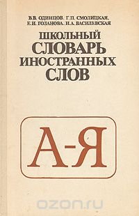 | Полное название книги | Г. П. Смолицкая, В. В. Одинцов, И. А. Васильевская, Е. И. Голанова Школьный словарь иностранных слов |
