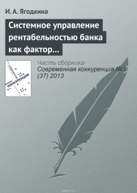 | Полное название книги | И. А. Ягодкина Системное управление рентабельностью банка как фактор его конкурентоспособности |
