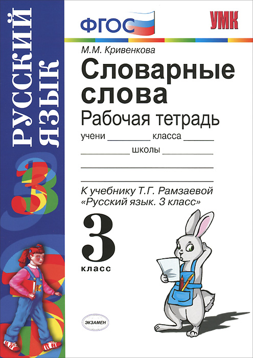 | Полное название книги | М. М. Кривенкова Словарные слова. 3 класс. Рабочая тетрадь. К учебнику Т. Г. Рамзаевой "Русский язык. 3 класс" |