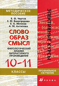 | Полное название книги | В. Ф. Чертов, Е. М. Виноградова, А. М. Антипова, Е. А. Яблоков Слово-образ-смысл. Филологический анализ литературного произведения. 10-11 классы |