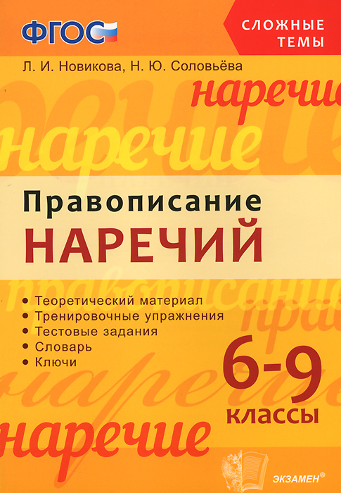 | Полное название книги | Л. И. Новикова, Н. Ю. Соловьева СЛОЖНЫЕ ТЕМЫ. ПРАВОПИСАНИЕ НАРЕЧИЙ. 6-9 КЛ. ФГОС |