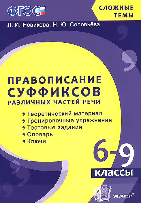 | Полное название книги | Л. И. Новикова СЛОЖНЫЕ ТЕМЫ. ПРАВОПИСАНИЕ СУФФИКСОВ РАЗЛИЧНЫХ ЧАСТЕЙ РЕЧИ. 6-9 КЛ. ФГОС |