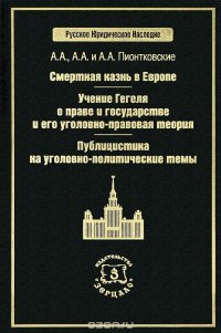 | Полное название книги | А. А., А. А. и А. А. Пионтковские Смертная казнь в Европе. Учение Гегеля о праве и государстве и его уголовно-правовая теория. Публицистика на уголовно-политические темы |