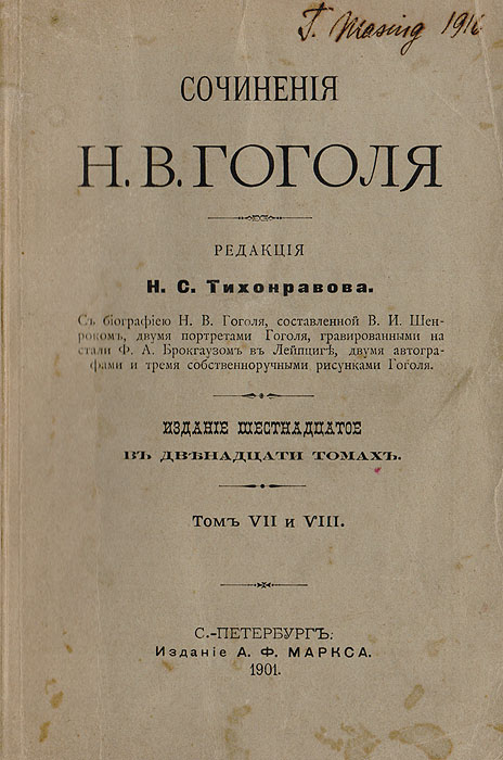 | Полное название книги | Николай Гоголь Сочинения Н. В. Гоголя. Тома 7 и 8 в одной книге |