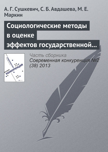| Полное название книги | С. Б. Авдашева, А. Г. Cушкевич, М. Е. Маркин Социологические методы в оценке эффектов государственной политики (на примере антимонопольного контроля слияний) |