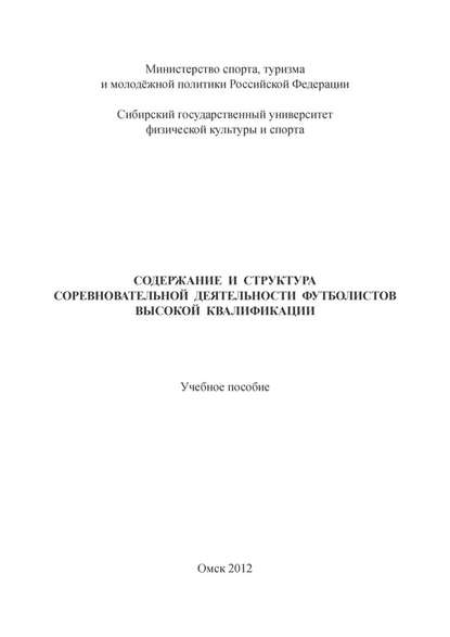 | Полное название книги | Коллектив авторов, Содержание и структура соревновательной деятельности футболистов высокой квалификации |