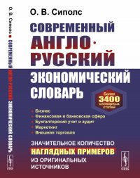 Современный англо-русский экономический словарь охватывает широкий круг базовых экономических понятий, неологизмов, а также терминов, которые используются в тесно связанных с экономикой сферах деятельности: бизнесе, финансовой и банковской сфере, бухгалтерском учете и аудите, маркетинге, во внешней торговле и др. Словарь отличается значительным количеством примеров и иллюстраций, заимствованных из оригинальных источников, что дает возможность пользователю подобрать удачный вариант перевода. В словаре содержится более 3400 словарных статей. Он может быть полезен студентам, аспирантам, научным работникам и всем, кто читает оригинальную экономическую литературу на английском языке. Sipols Olga Vilnovna. The New English-Russian Dictionary of Economics. The New English-Russian Dictionary of Economics contains over 3400 updated entries. It covers a wide range of essential and recent economic, financial, banking, accounting, business and marketing terms. It is addressed primarily to students of economics, postgraduates and is also a valuable reference book for professionals and anyone needing a guide to economic terminology. Это и многое другое вы найдете в книге Современный англо-русский экономический словарь. Более 3400 словарных статей (О. В. Сиполс)