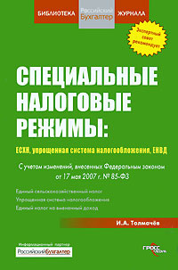 | Полное название книги | И. А. Толмачев Специальные налоговые режимы. ЕСХН, упрощенная система налогобложения, ЕНВД |
