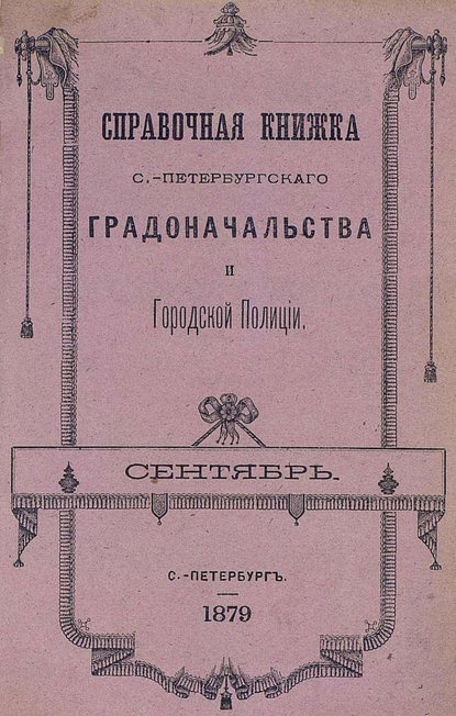 | Полное название книги | Коллектив авторов, Справочная книжка С.-Петербургского градоначальства и городской полиции, составлена по 20 сентября 1879 г. |