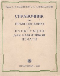 | Полное название книги | Н. Н. Никольский, К. И. Былинский Справочник по правописанию и пунктуации для работников печати |