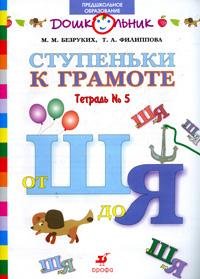 | Полное название книги | М. М. Безруких, Т. А. Филиппова Ступеньки к грамоте. Рабочая тетрадь №5. От Ш до Я |