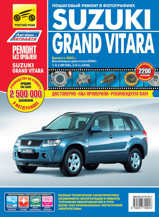 | Полное название книги | А. В. Кондратьев, А. А. Яцук Suzuki Grand Vitara c 2005 г. Руководство по эксплуатации, техническому обслуживанию и ремонту |