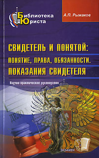 | Полное название книги | А. П. Рыжаков Свидетель и понятой. Понятие, права, обязанности. Показания свидетеля |