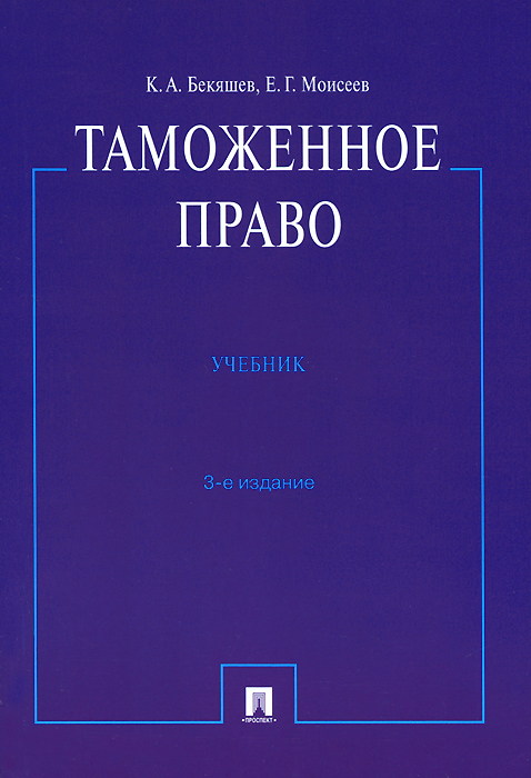 | Полное название книги | К. А. Бекяшев, Е. Г. Моисеев Таможенное право.Уч.-3-е изд.-М.:Проспект,2015 |