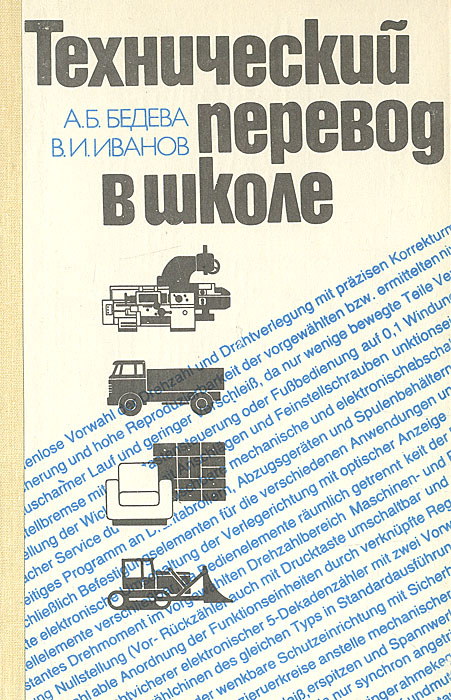 | Полное название книги | А. Б. Бедева, В. И. Иванов Технический перевод в школе. Пособие для учащихся X - XI классов школ с углубленным изучением немецкого языка |